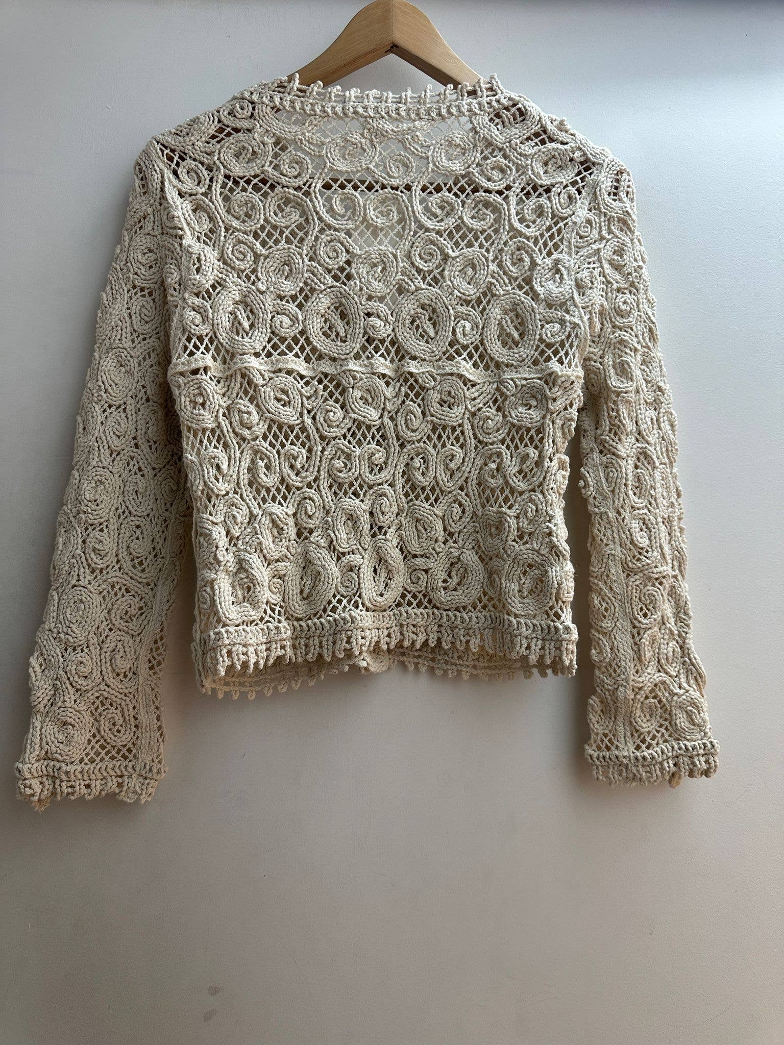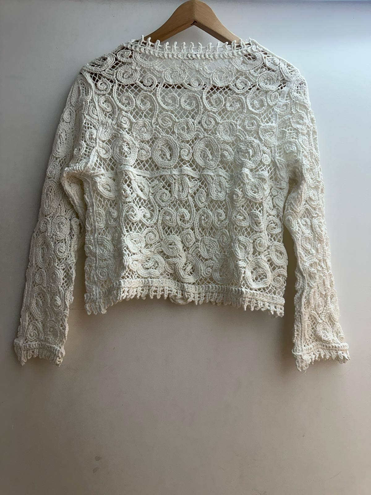 7103 colete bordado mangas 3/4 em algodão tamanho único: Branco / Único