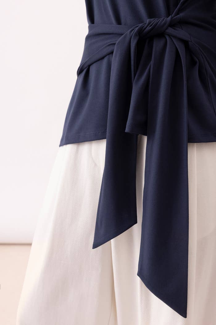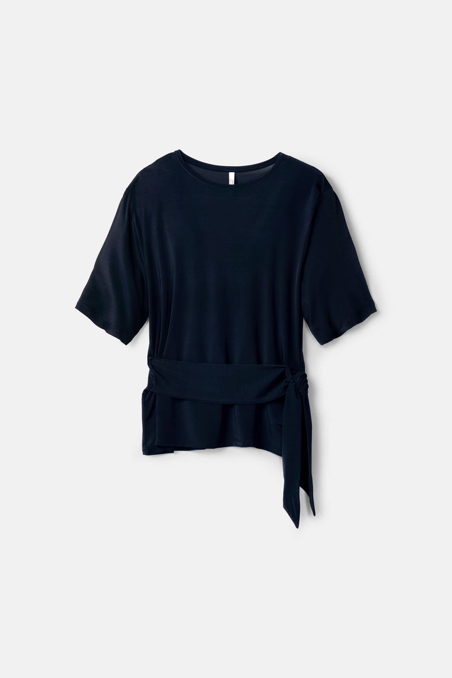 Adicione um toque de elegância ao casual com esta t-shirt lisa, realçada por um detalhe sofisticado de cinto. Perfeita para um estilo descontraído, mas cheio de charme.